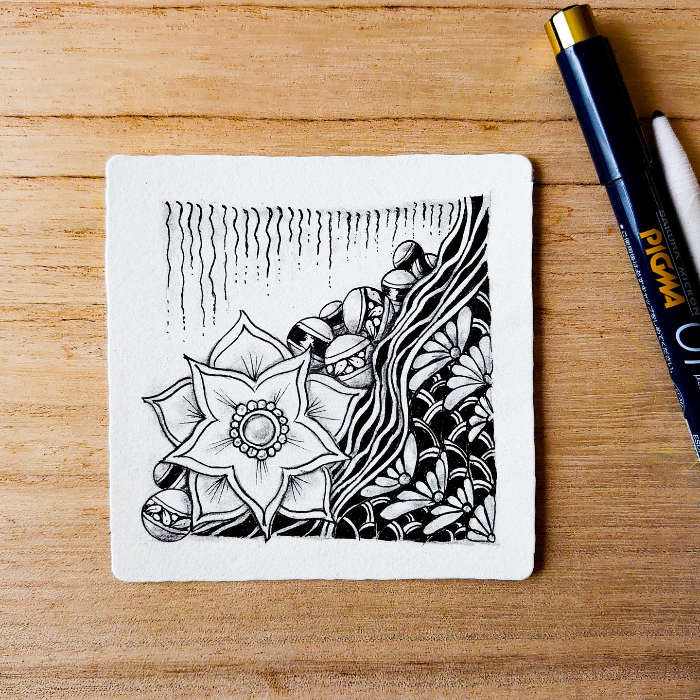 ゼンタングル・メソッドに出会うまで、絵を学んだことも、描いたこともないど素人でしたが、初めてでも描けるようになるゼンタングル・メソッドって本当に凄い。